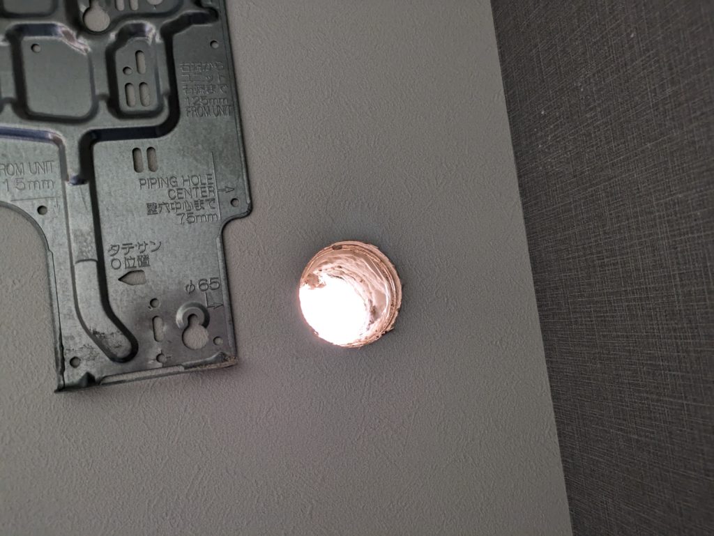 取付場所は、新規取付になります。佐世保市内での引っ越しのためのエアコン移設工事になります。