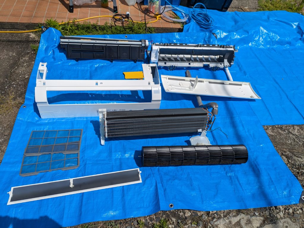 エアコン取り外し後、完全分解洗浄を行い、移設先へ取付工事の流れになります。