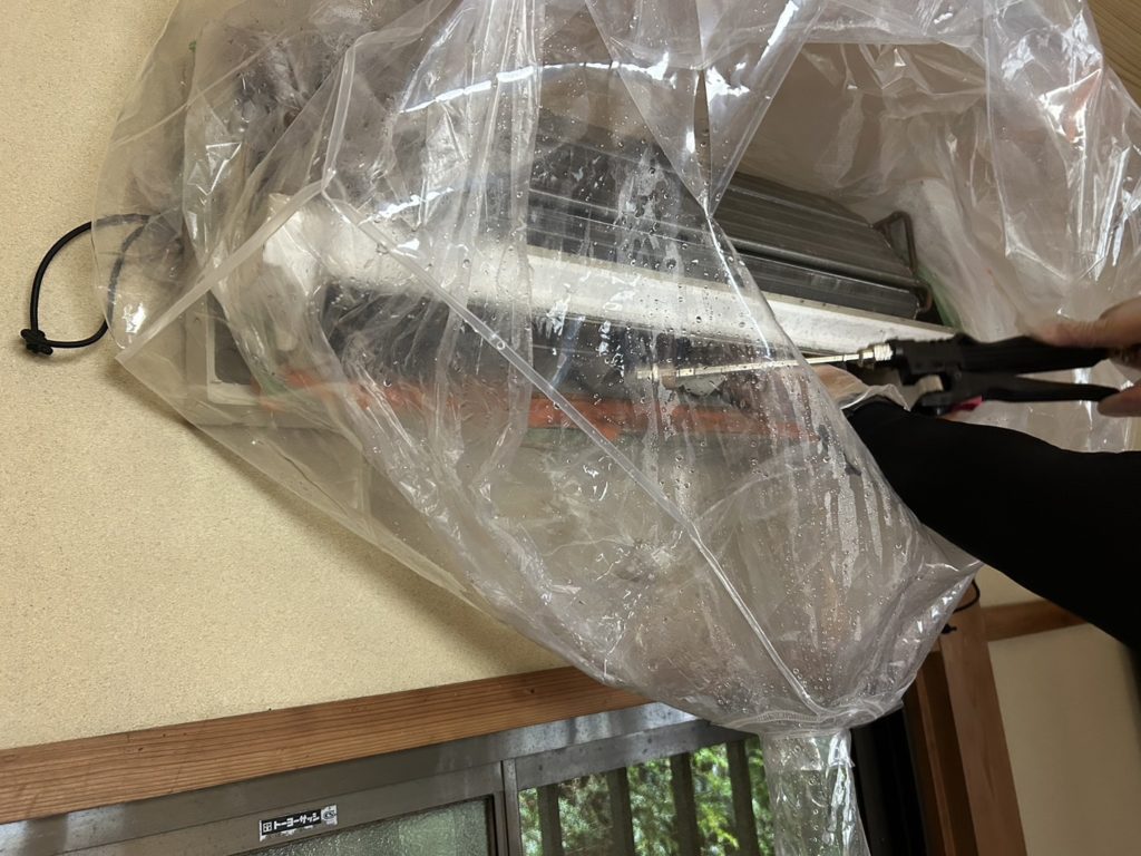 長崎県佐世保市でのエアコンクリーニング。