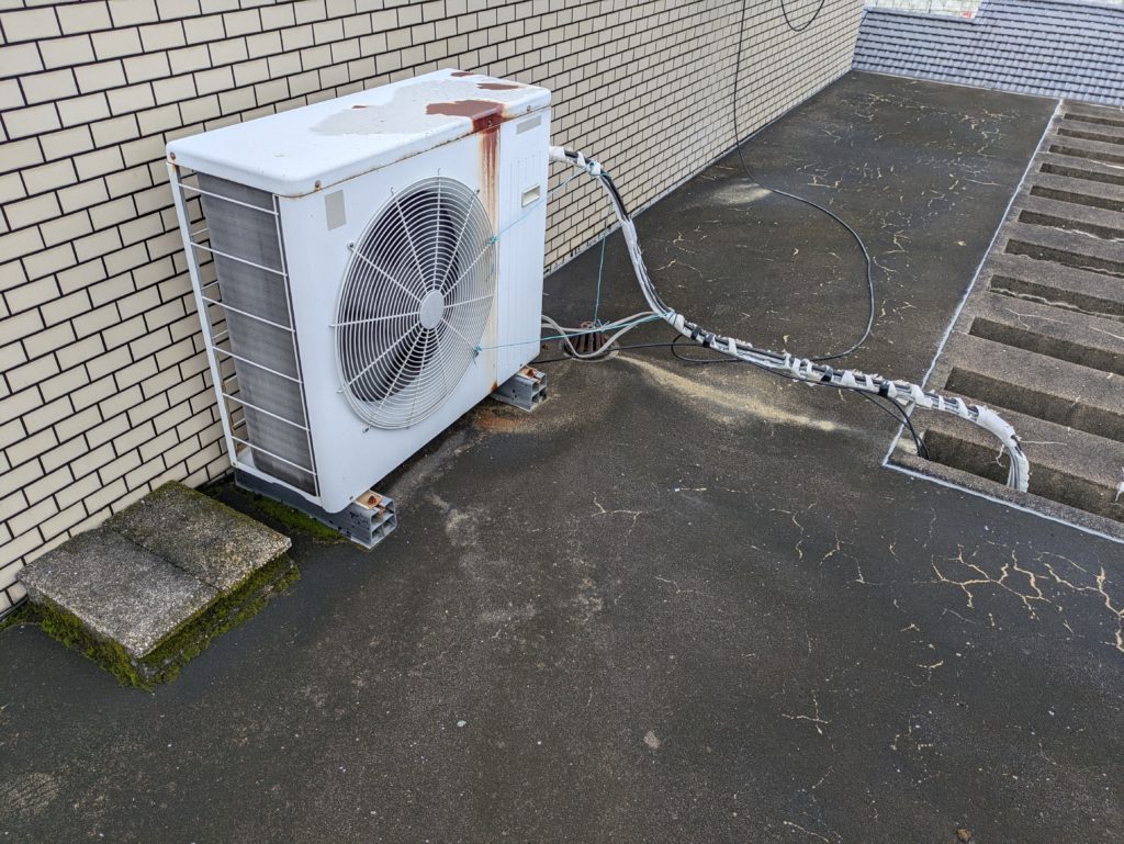 保温材が剥がれ銅管がむきだしでした。